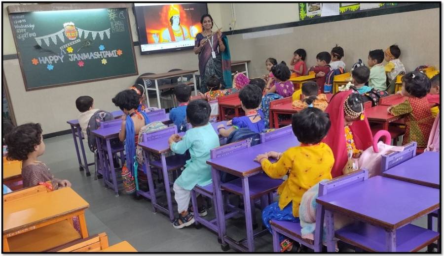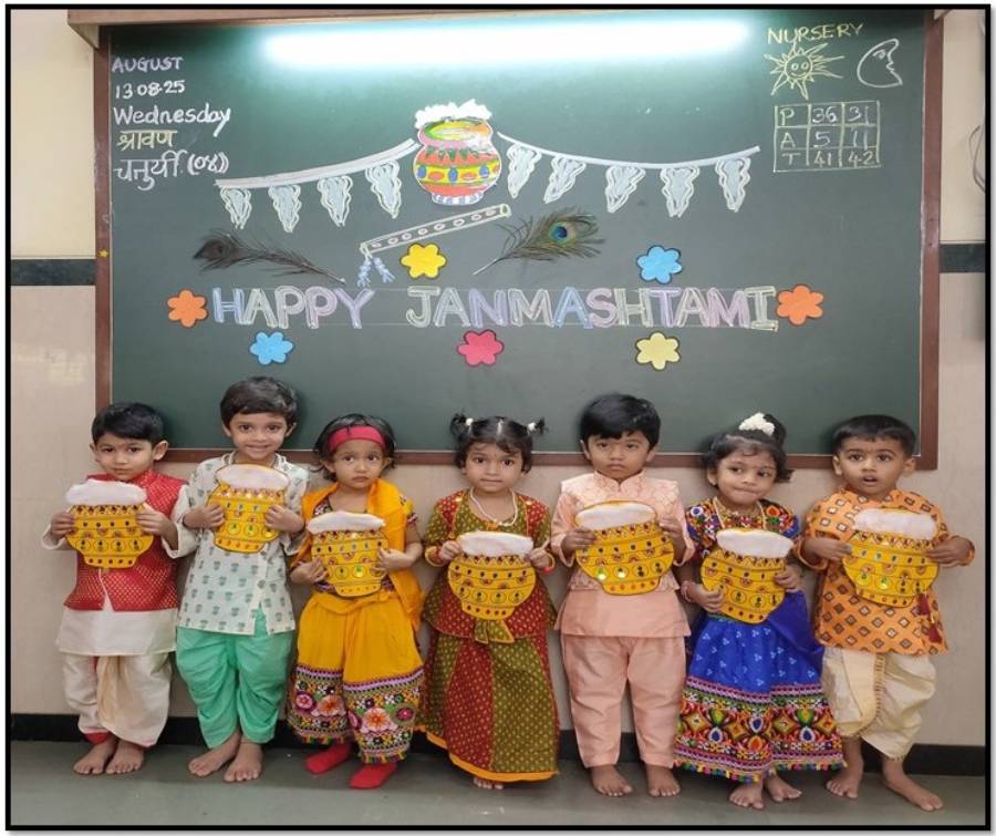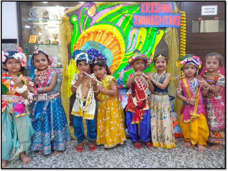 Teachers narrated the story of Lord Krishna’s birth through presentations and videos, helping children understand the reason behind celebrating this auspicious occasion. Joyful dances around the Dahi Handi and the thrill of forming a human pyramid brought alive the traditional fervour of Janmashtami.