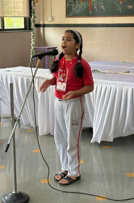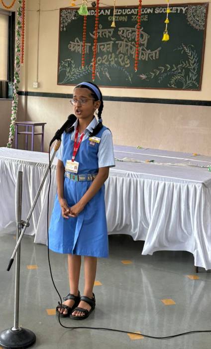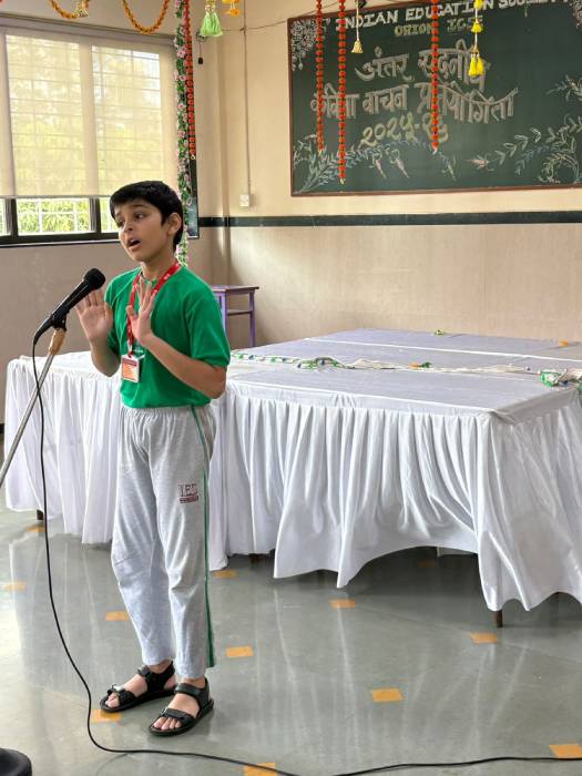 A lively Hindi poem recitation competition was held at IES Orion School for the Primary Section (Std. I - Std V) on the theme of Titli, Chidiya "Barkha" " Prakriti "Hasya-Kavita" Two participants from each house from each standard participated, delighting the audience with their expressive recitals. Twenty-four, students representing all four houses participated delighting the audience with their expressive recitals. The children beautifully conveyed the messages about each topic. The young participants not only enhanced their public speaking abilities but also cultivated a greater respect for the Hindi language.