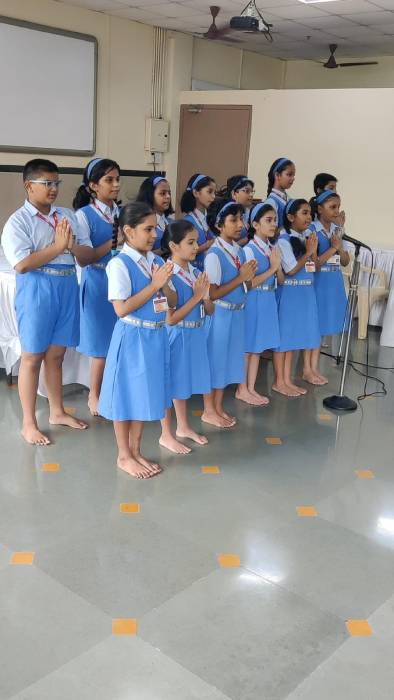 World Sanskrit Day is celebrated every year on Shravana Poornima to promote the use and awareness of Sanskrit, one of the oldest known languages in the world and the root of many Indian languages. The programme began with a peaceful prayer, followed by a soulful Ganesh Stotram. A Sanskrit-English conversation showcased practical language use. Students sang engaging Sanskrit songs teaching numbers and colours. The celebration ended with another serene prayer, creating a sense of unity and highlighting Sanskrit’s relevance in today’s world.