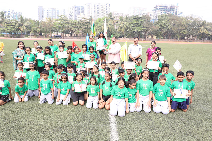 Annual Sports Day for the Primary Section was conducted on 23rd December 2024 at Police ground, Ghatkopar. The chief guest Mr. Manoj Manohar More, Assistant Sub-Inspector Mumbai Police graced the occasion with his presence. Program started with fabulous march past by the students of std III to V. Mascot with the theme ‘My India, My Pride’ was released with the gas balloons by the Chief Guest and Principal Mrs. Pratibha Prabhu.