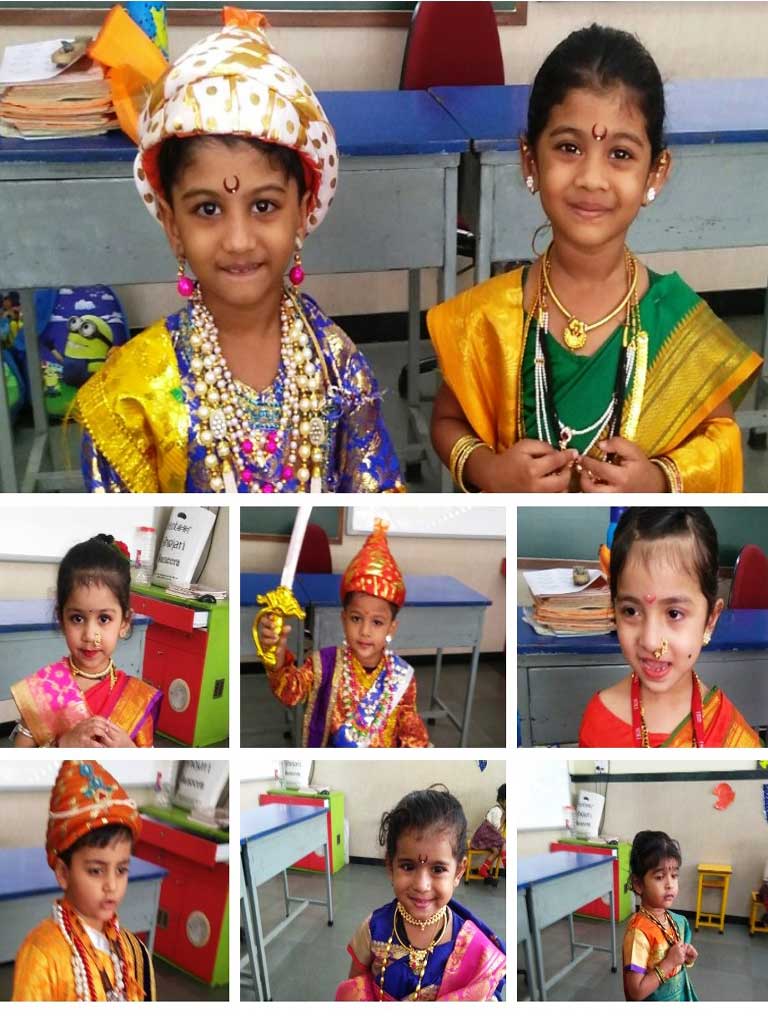 We at Orion celebrated ‘Shiv Jayanti’ with great fervour. The portrait of ‘Shivaji Maharaj’ was garlanded in ‘School Assembly’. A power point presentation was shown and stories on his bravery and truthfulness were narrated.To pay their respects to this warrior, KG students came dressed as the characters from Shivaji Maharaj’s era (Shivaji Maharaj,Jijamata,Mavlas etc) and shared information by singing ‘Shiv Stuti’ songs and narrating the great warrior’s velour stories..