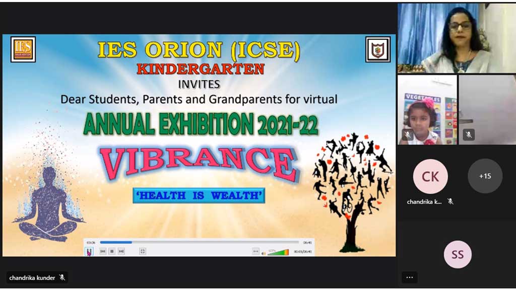 This year’s unique virtual ‘Annual Exhibition – Vibrance’ was conducted on Sunday, 20th February 2022 on Microsoft Teams Platform. The theme of the exhibition was ‘The skill to heal, the spirit to care’ which focused on the topic ‘Health is wealth’. Our Kindergarten students were given an opportunity to share their knowledge about the safety measures to be taken to prevent oneself from the Corona Virus. The exhibition began with the introduction of the new alphabet ABC’s to be followed during the pandemic. Students from Nursery, Jr. KG and Sr. KG participated in this special event to explain the importance of our health through some tips namely eating healthy food, cleanliness, washing hands, kindness, yoga, meditation, warmup exercises through their dialogues and dance performances. The exhibition imparted the much needed safety precautions to be followed during the pandemic and highlighted the message of health is wealth.
