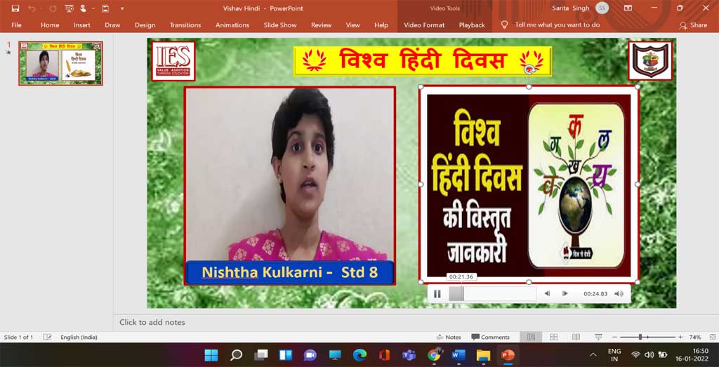 It was on the 10th of January, 2022 Monday, when our school IES Orion celebrated 'Vishwa Hindi Divas'. The constraints of the pandemic Covid -19 could not curtail the enthusiasm of the students to let out their feelings for this great language and they took part through virtual medium in its celebration along with their teachers’ guidance. The students threw light on the multifaceted virtues of Hindi and emphasized to dwell on its use in day to day life.