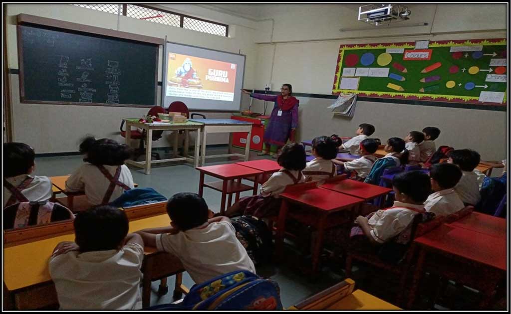 An informative talk on Guru Purnima was given by the class teachers through a PowerPoint Presentation. They narrated the story of Aruni and Dhoumya Rishi. Students learnt the values of obedience and hard workfrom the story of Aruni.