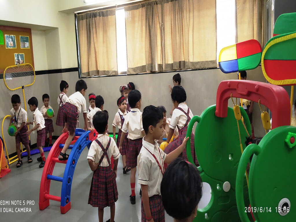 Students were taken around the campus and introduced to the different working areas of the school like Administration office, Principal Madam’s cabin, Sick Bay, Game rooms, Free Activity room, Computer room, Art room, Library, Stilt area, School ground and Canteen to make them familiar with school environment and the people who work at school.