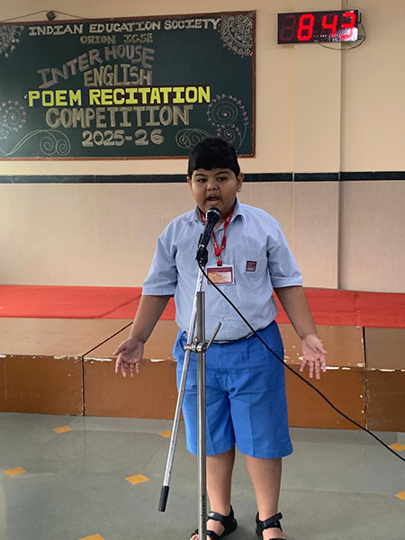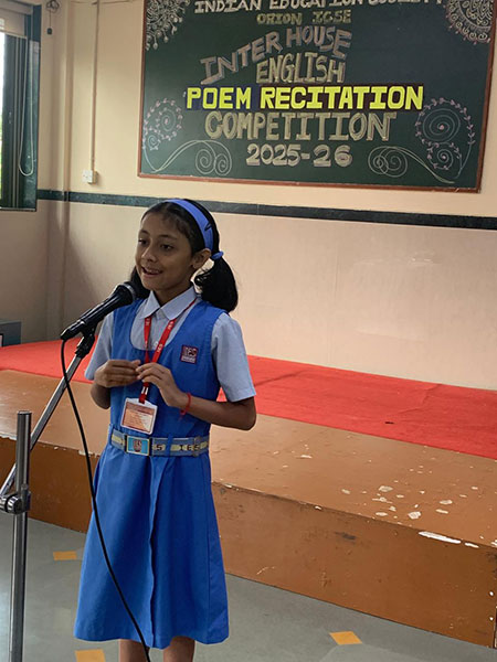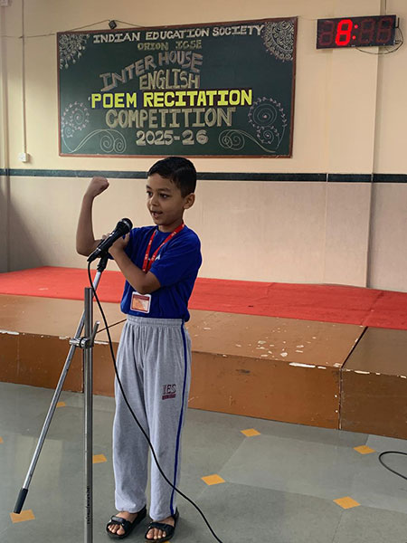 A lively poem recitation competition was held at IES Orion School for the Primary Section (Std I -V) on the themes of kindness, nature, friendship, patriotism and humour. The children beautifully conveyed messages about caring for others, protecting the environment, value of friendship in their lives, patriotic feelings, and humorous poetry brought smiles and laughter to the hall. It encouraged young students to develop their confidence and appreciation for important value.