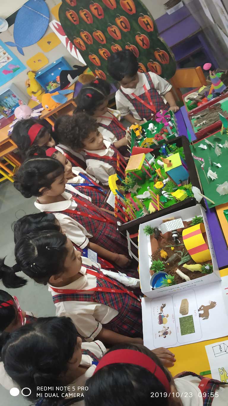 Junior KG.: ‘Vegetable market’ was set up by school. Students dressed up as “Green Grocers” and sold a variety of vegetables. Their parents and grandparents accompanied them for selling. Other parents and teachers were vegetable buyers.