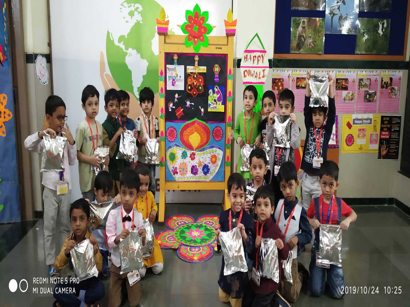 The time of ‘Diwali’ is one of the most festive and beautiful time of the year. Students decorated earthen oil lamps with sparklers and sequences and made them more colourful and attractive. Students decorated earthen lamps with colours and glitters. Teachers explained that instead of polluting the environment, we can avoid firecrackers and celebrate ‘Pollution free festival of lights’. It can be an eco-friendly affair this year. Don’t use electric lights. Instead, go for small earthen lamps and candles. It would reduce electricity consumption. Students promised to celebrate ‘Green Diwali’ without crackers. -