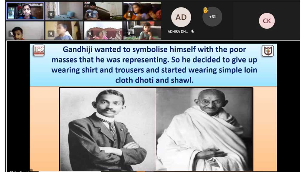 Keeping this excitement in mind, IES Orion Kindergarten celebrated Gandhi Jayanti and Lal Bahadur Shastri Jayanti on the common platform of Microsoft Teams on Friday, 1st October, 2021. The students were given a brief introduction about these two great national leaders by their respective class teachers. An informative PowerPoint Presentationon Mahatma Gandhiji and Lal Bahadur Shastriji was also sharedwith the students.