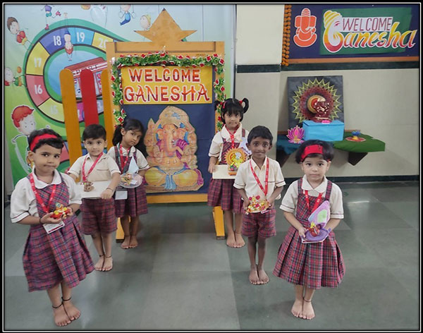 Principal Mrs. Pratibha Prabhu led the arti followed by the staff. Students were taken for darshan. Prasad was distributed The Ganapati celebration at Orion School was a memorable and enriching experience for all involved.