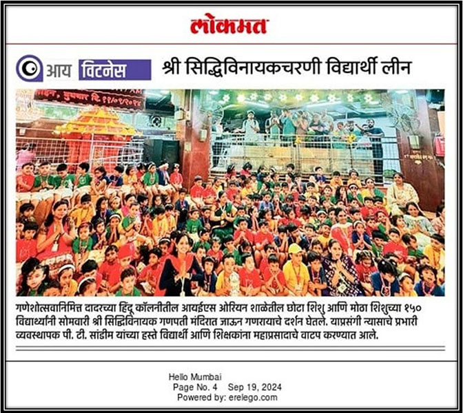 The Shri Siddhivinayak Mandir is dedicated to Lord Ganesha. It is located in Prabhadevi, Mumbai. It was originally built by Laxman Vithu and Deubai Patil on 19th November 1801. It is one of the most popular temples in Mumbai. The popular belief is that Siddhivinayak Ganpati fulfils the wishes of anyone who prays at this temple with a true heart. To seek the blessings of Lord Shree Siddhivinayak, IES Orion Kindergarten had planned a field trip to Siddhivinayak Temple. On Monday, 16th September 2024 we visited the temple. Students and teachers gathered early morning, boarded buses, and embarked on a journey to the renowned temple. It was a joyful day where everyone experienced spiritual ambiance of the temple. Teachers and students participated in rituals and offered prayers to Lord Ganesha. The atmosphere was vibrant, filled with chants and the aroma of incense. The trip concluded with a sense of unity, spirituality, and joyful memories. A day full of blessings of the almighty for the little Orionites.