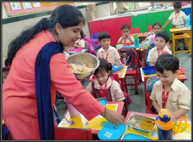 It is important to inculcate healthy eating habits in students from the beginning to lead a healthy lifestyle. IES Orion Kindergarten celebrated “Healthy Food Fiesta Week” from Monday, 23rd September 2024 to Friday, 27th September 2024 to make students aware about the fact that eating right is a key to healthy living and good eating habits go a long way in improving our health and nourishing the body. A fit and active lifestyle demands the right nutrition for the body to function. Students were given an insight into healthy food and good eating habits through various activities in a fun filled way. To know the importance of Vitamins students brought slices of fruits on Monday, 23rd September 2024. Vegetables play a very important role in our diet and to understand these better students brought Vegetable Salad on Tuesday, 24th September 2024. Leafy vegetables should be a part of our diet so students got food prepared from leafy vegetables on Wednesday, 25th September 2024. Jr.KG and Sr.KG students shared their views and thoughts on Healthy Food and Junk Food using charts and flash cards on Tuesday, 24th September 2024. Our little Green Grocers of Nursery set up their vegetable market to explore, learn and observe real vegetables. They dressed up as Vegetable Vendors (Green Grocers) and performed role play on Wednesday, 25th September 2024. For Science and Sensorial, activities were conducted on Friday, 27th September 2024. Sr.KG students brought a piece of boiled corn cob for the activity. They removed the corn kernels and prepared “Corn Bhel”. Jr.KG students brought one boiled potato for “Aaloo Chat” activity. They peeled the potato and made “Aaloo Chat”. Nursery students brought one unpeeled banana and few slices of other fruits to make the fruit salad. They peeled the banana with teacher’s assistance and cut them into small pieces. Thus, the Healthy Food Fiesta Week was a great learning experience for the students of Kindergarten.