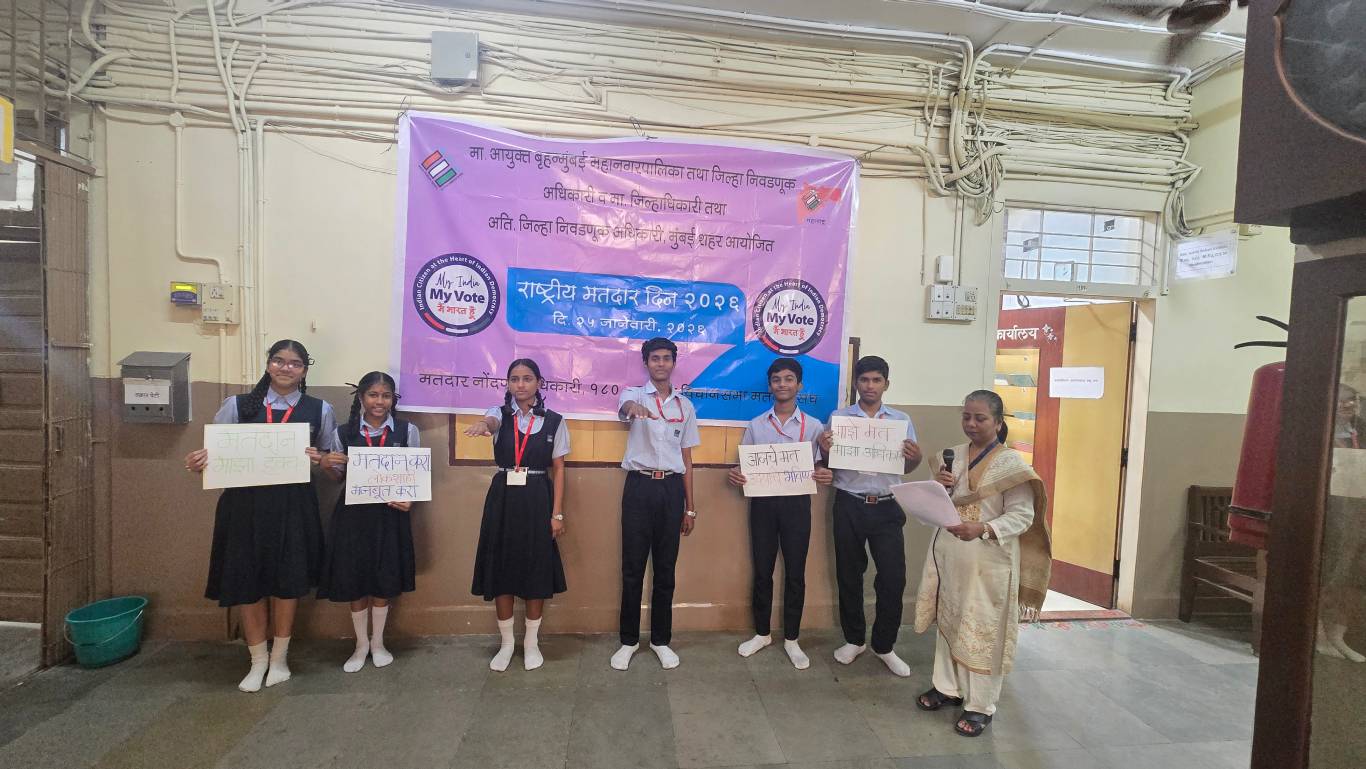 इंडियन एज्युकेशन संस्थेच्या राजा शिवाजी विद्यालयात दिनांक 24 जानेवारी 2026 रोजी My India, My Vote या संकल्पनेवर आधारित सोळावा राष्ट्रीय मतदार दिन उत्साहात साजरा करण्यात आला. या कार्यक्रमाचा मुख्य उद्देश विद्यार्थ्यांमध्ये व समाजामध्ये मतदानाबाबत जागरूकता निर्माण करणे व लोकशाही मूल्यांची जाणीव करून देणे हा होता.