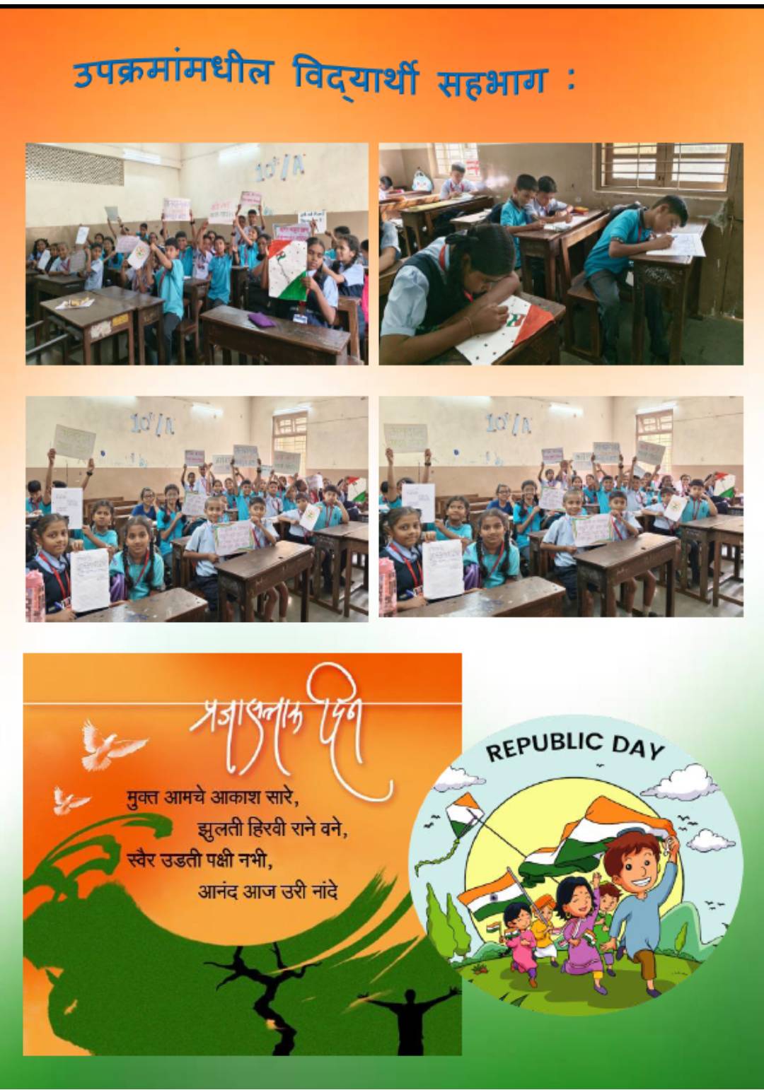 प्रजासत्ताक दिनाननमित्त शाळेत शासन पररपत्रकानुसार ववववध उपक्रिाांचे आयोजन करण्यात आले.