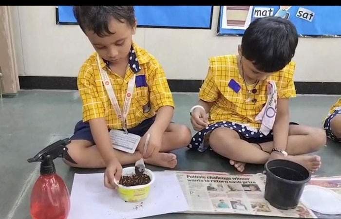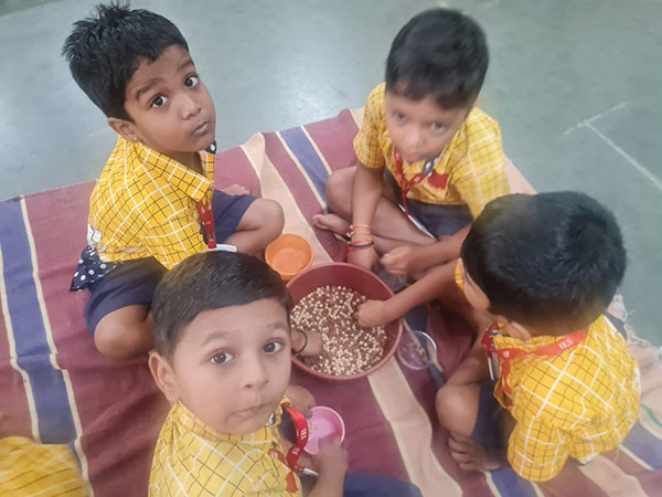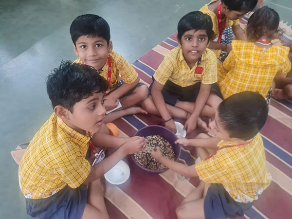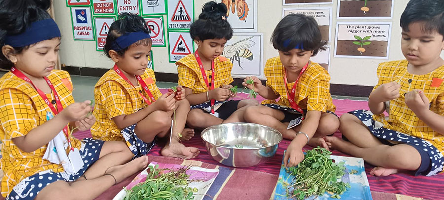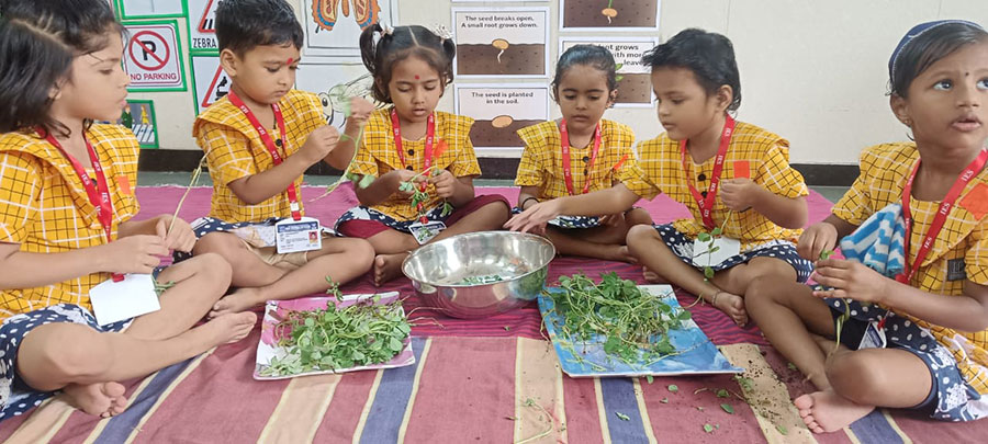Methi leaves activity was conducted for Jr. KG. children to develop fine motor skills. Next day Methi puri was distributed to all the children.
