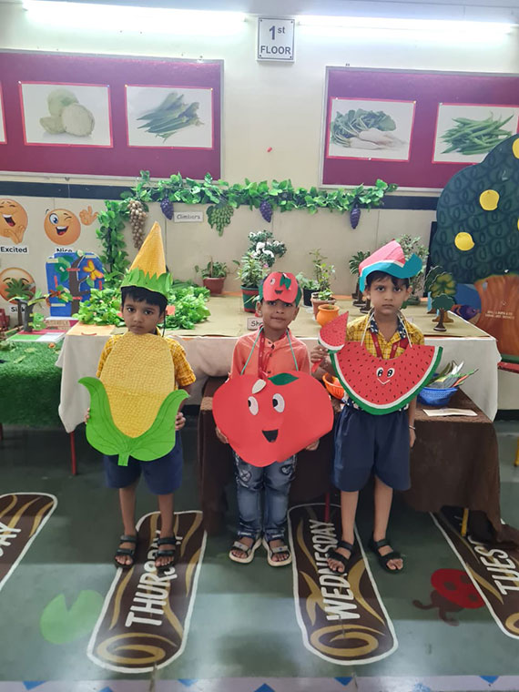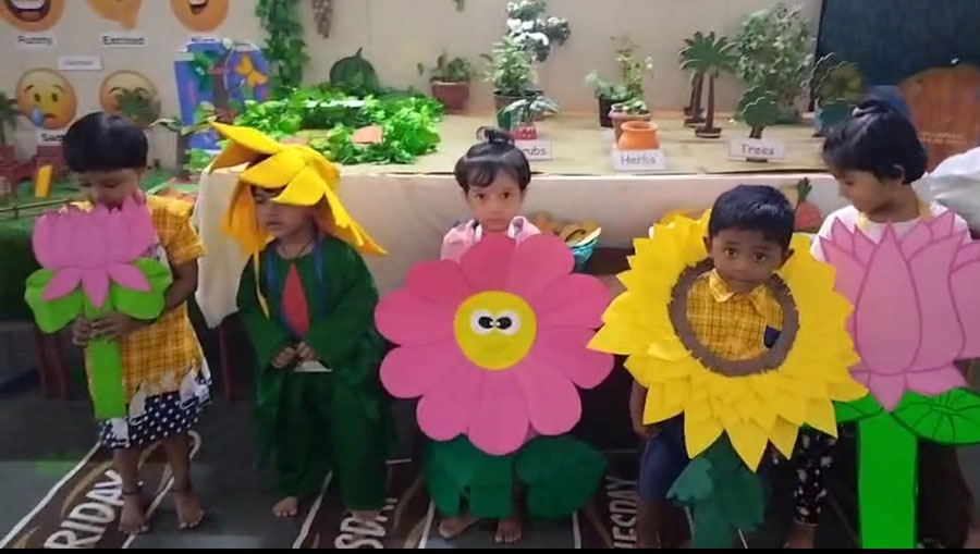 Talent search fancy dress was conducted for Mini, Jr. & Sr. KG children. Topics were flowers, vegetables, any bird and sweets.