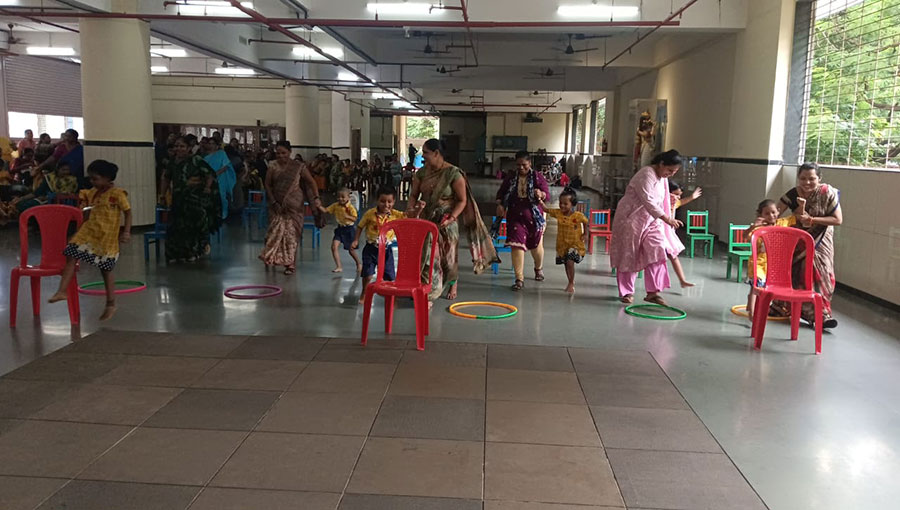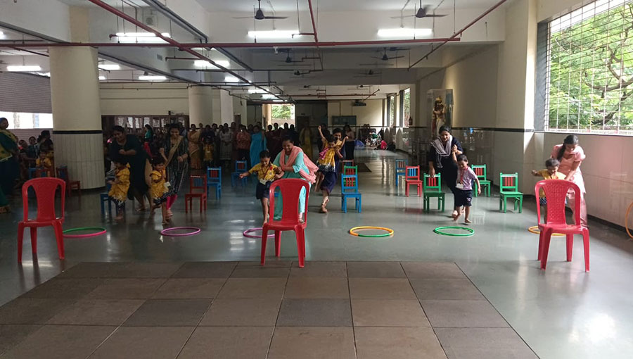 On the first day of Kindergarten for welcoming the children, classrooms and corridors were decorated with beautiful pictures and soft toys. In-charge Mrs. Jayashree P. Shinde and teachers welcome students and parents by distributing beautiful stick puppets. Teachers had given general instructions regarding school rules and regulations to the parents.
