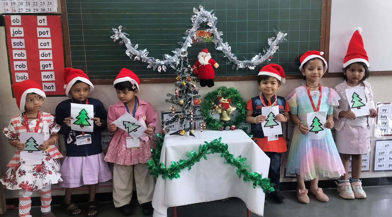 Christmas celebration was held on Wednesday 24/12/2025. A beautiful project was displayed. 'Colouring Christmas tree' activity was taken from all the children. Children were distributed cakes as a token of love. Children danced and sang Christmas songs and enjoyed the day.